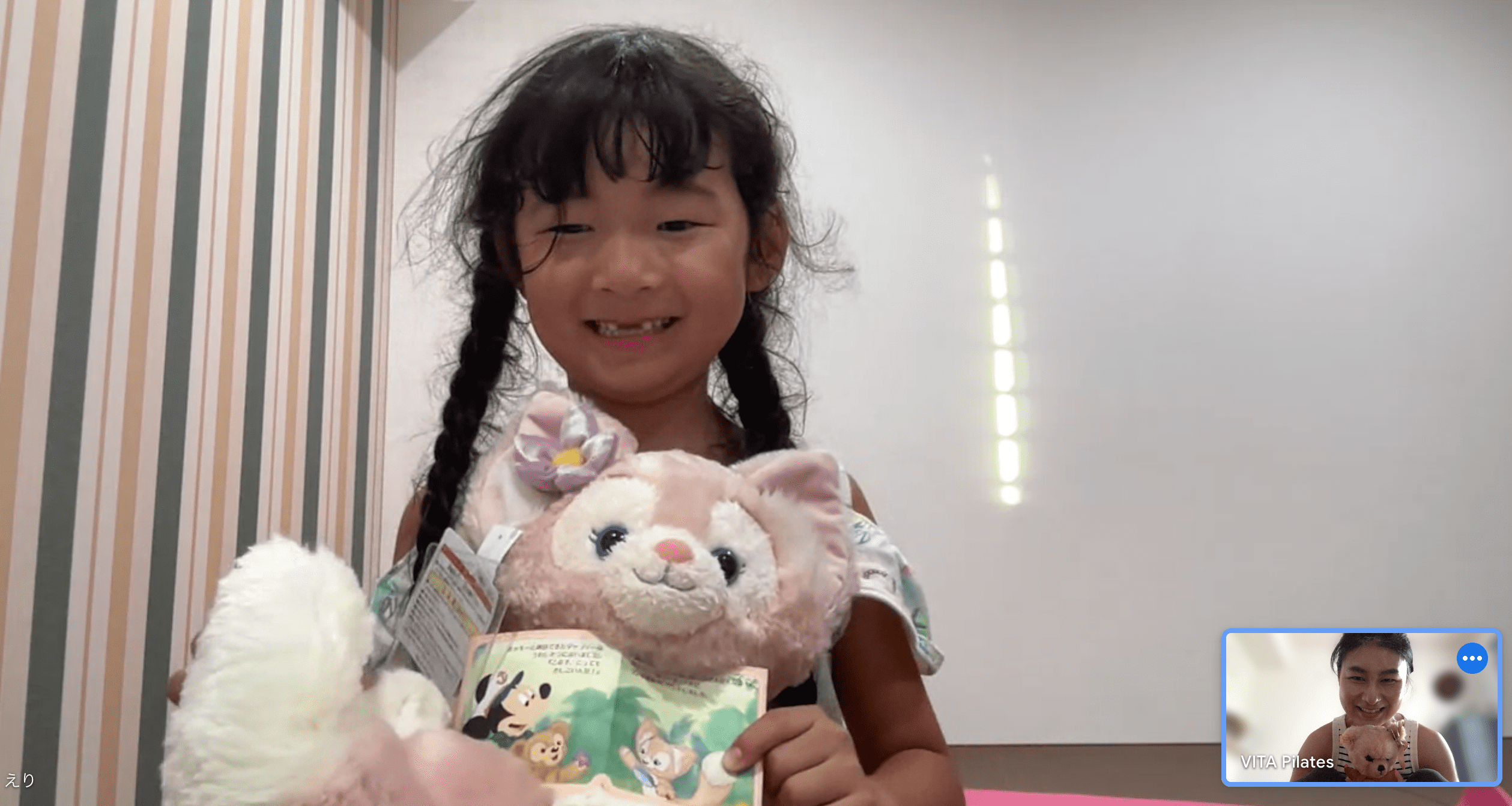 もともとは、お母さんのレッスンをさせてもらったのですが、娘ちゃんから「やりたい」との声があって、今回のオンライン・キッズピラティスが実現しました!