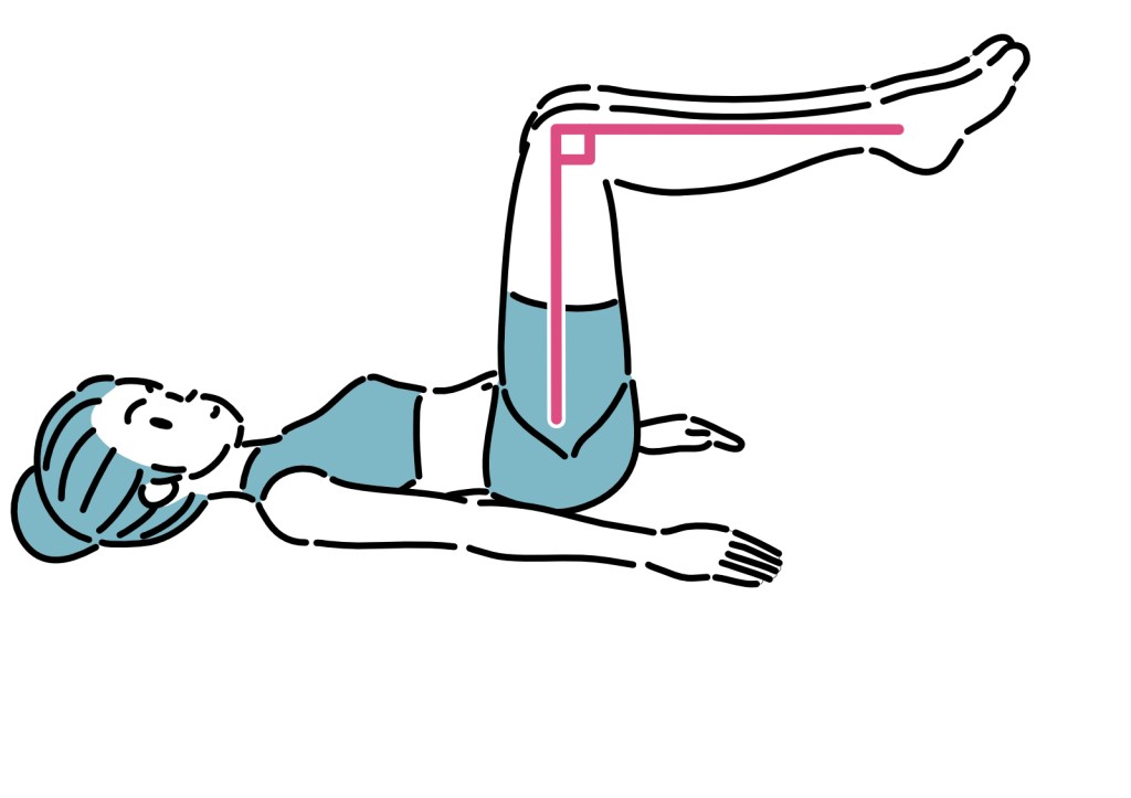 背中はマットにつけますが、腰椎(腰の部分)は自然なカーブを保ち、完全に押し付けないようにします。 - 膝を90度に曲げる