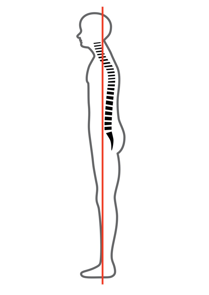 特徴としては、骨盤が後傾していて頭が前に突き出た状態です。