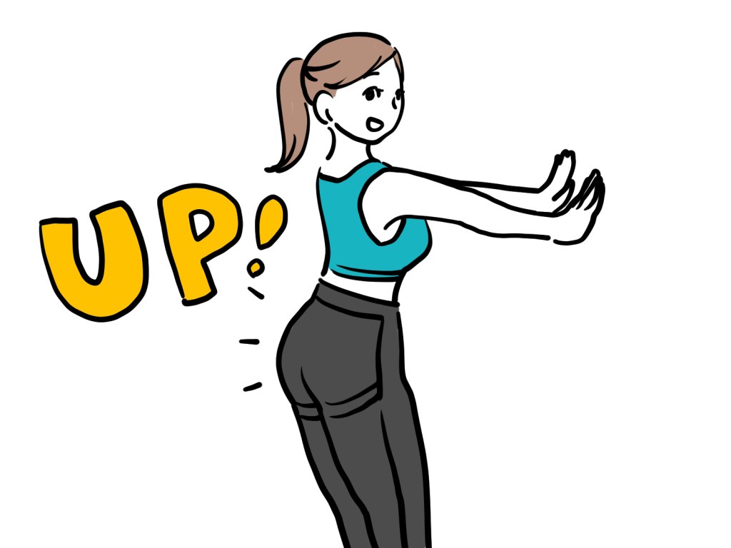 息を吐くときに腹筋とお尻を意識すると、筋肉のスイッチが入りやすくなります。