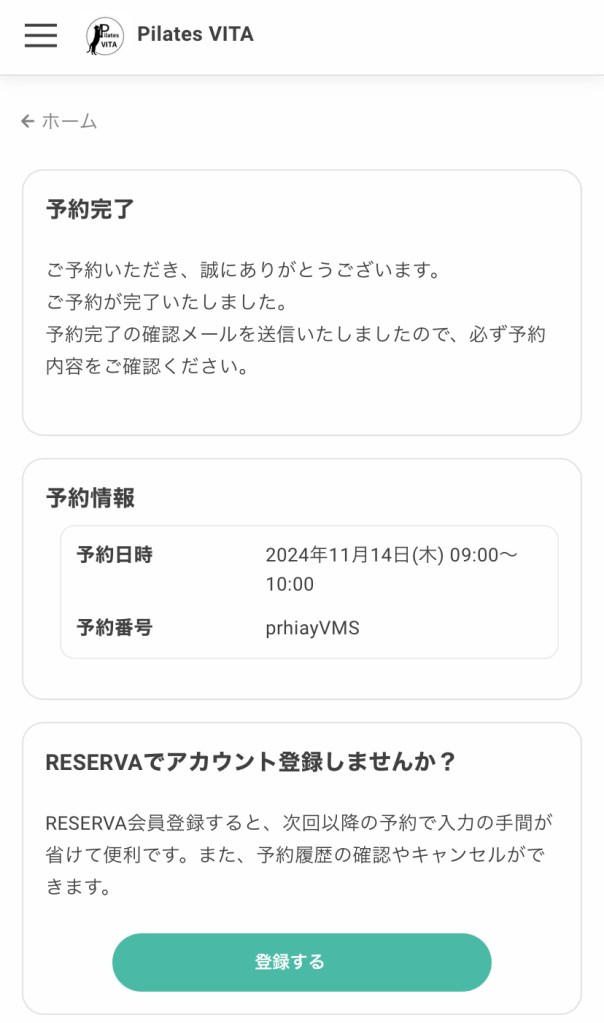 ⑨予約完了画面をご確認ください。
