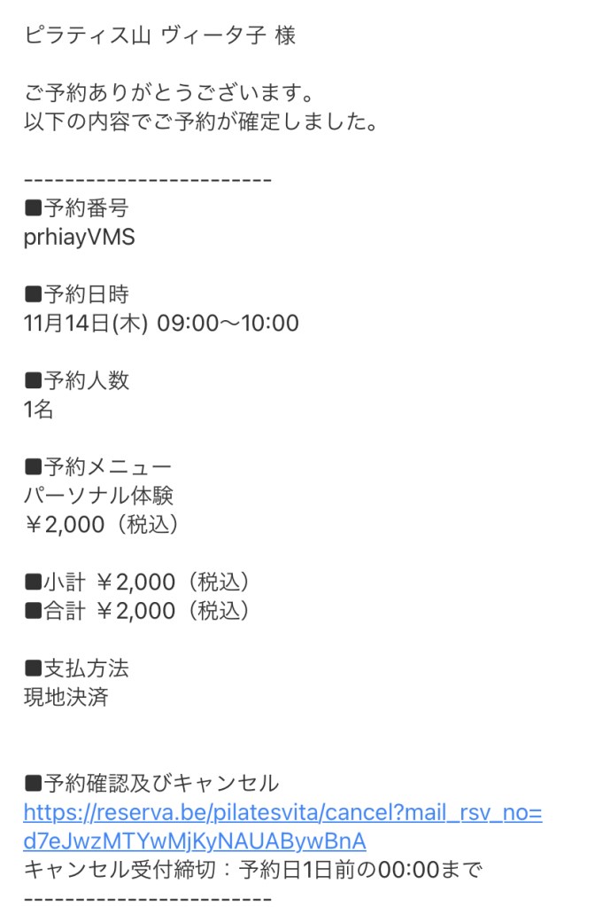 ⑩予約確定のメールが届きますので、ご確認をお願いいたします。